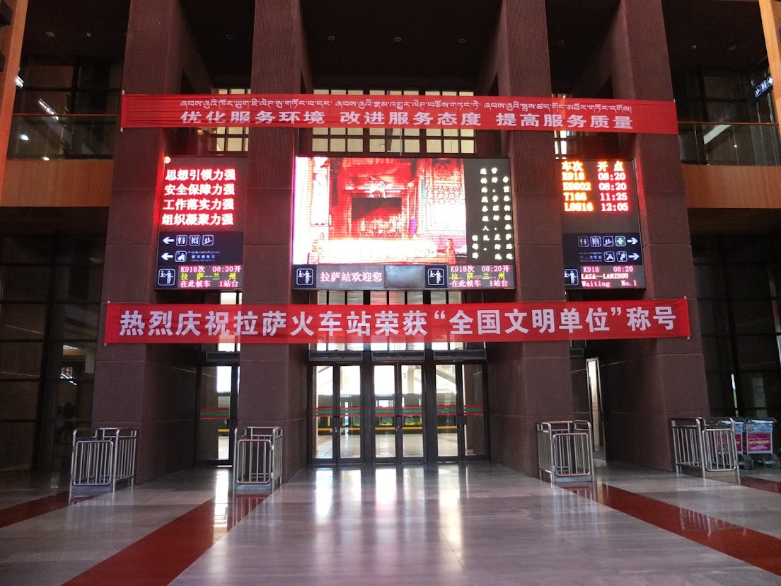 由於要趕火車,今日五點半便 Morning Call(天上還掛著一彎月亮哩),趕緊梳洗收拾行李,用過此趟在西藏的最後一頓早餐後,便搭上遊覽車前往拉薩火車站,與王導告別,也麻煩王導幫忙寄出我們的明信片了(結果寄到台灣的都有到呀,到上海的反而沒有…)。